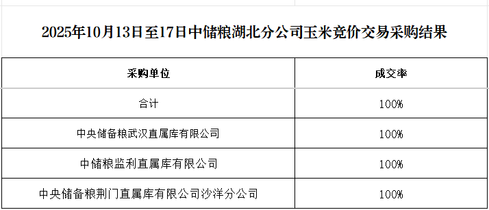 本周湖北贸易粮成交2025年玉米14200吨,成交率100%,成交均价2380元/吨。